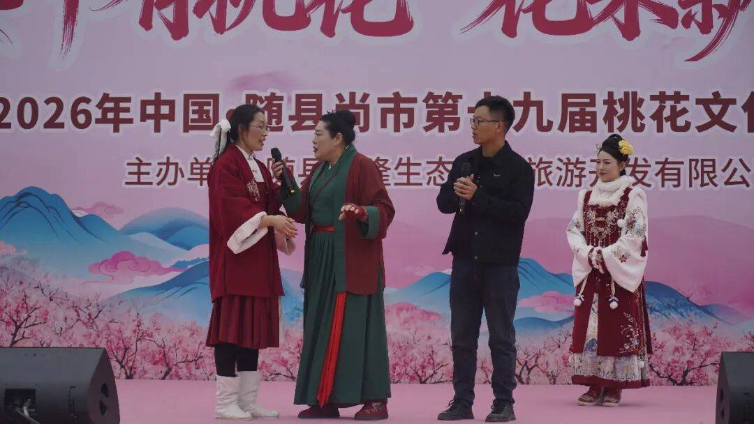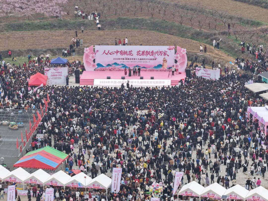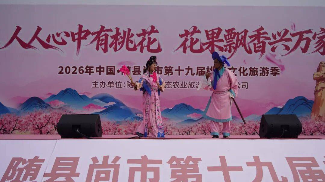 湖北日报客户端讯(通讯员 黄思寒、杜秋阳、谭彬、贺思雄)十里桃林迎宾客,花果飘香兴万家。3月19日,2026年随县尚市第十九届桃花文化旅游季正式启幕。本次活动以“人人心中有桃花,花果飘香兴万家”为主题,融合文化展演、乡村体验、产业互动等内容,生动展现乡村振兴的生动图景。