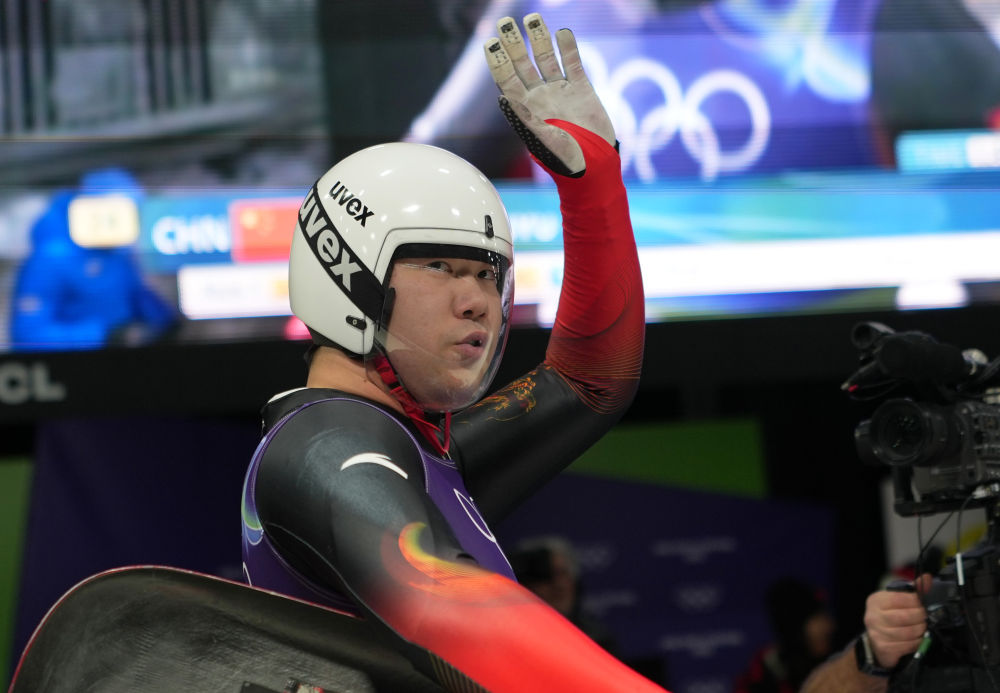 2月7日,中国雪橇选手鲍振宇比赛后(新华社 李钢 摄)